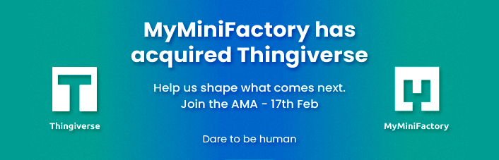 Holy wow!! https://www.thingiverse.com/blog?p=thingiverse-joins-the-myminifactory-family Thanks Michael for the heads up! #Thingiverse 🔗 February 12, 2026 at 10:05AM EST • by Marty McGuire Have you posted a response to this? Let me know the URL: Likes
