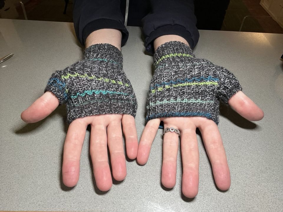 - My math worked out so the body sections had an odd number of rows, which was pretty chaotic when it came time to bring held needles back into work. I think in the future I will either make sure that I round that row count up or down to the next even number for all sections, or perhaps alternate round-ups and round-downs to end up with the same number of rows.