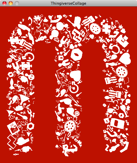 Basically, I wanted to take a simple shape, defined by an SVG path, and fill it with images of 3DobjectsloadedfromSTLfiles. Specifically, many wonderful MakerBot-printable objects from Thingiverse!